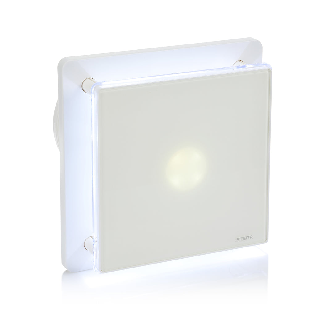 BFS125LT – Stille badkamerventilator met LED-verlichting en timerfunctie voor betrouwbare ventilatie met decoratieve sfeer en automatische uitschakeling in badkamers en toiletten.