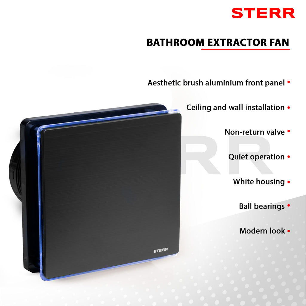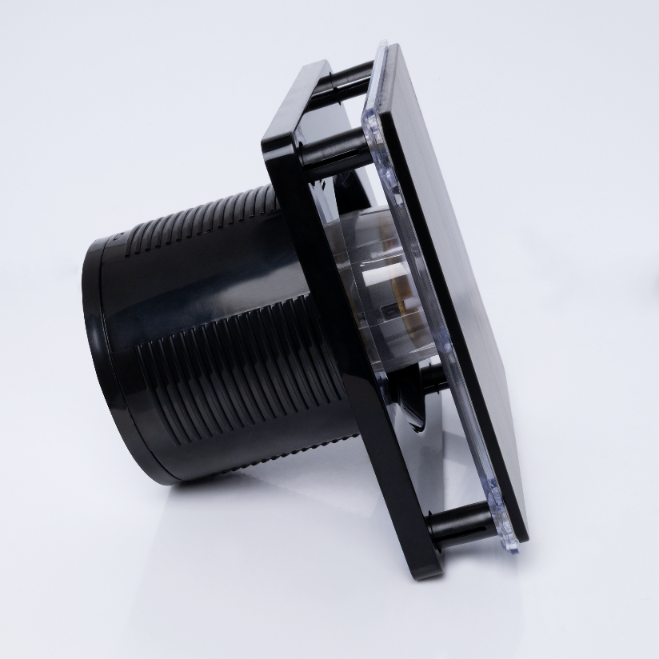 BFS100L-BA – Stille badkamerventilator met energiezuinige LED-verlichting voor betrouwbare ventilatie en decoratieve sfeer in badkamers en toiletten.