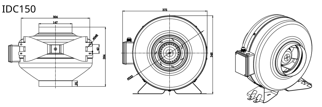 STERR IDC150 - 150 mm Centrifugaalventilator, Duurzame metalen behuizing, 680 m³/h, 110 W
