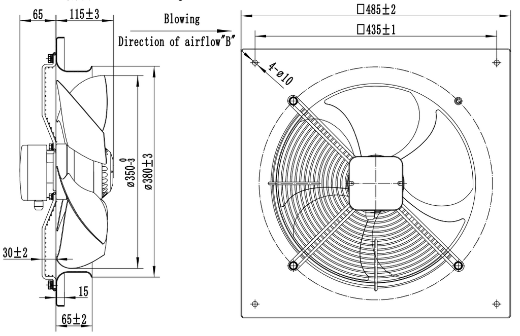STERR AXF350B - 350 mm Axiale Afzuigventilator, 2700 m³/h, 135 W
