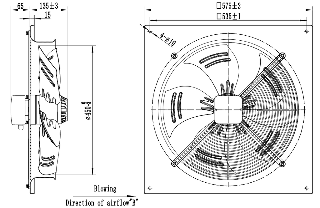 STERR AXF450B - 450 mm Axiale Afzuigventilator, 4500 m³/h, 230 W