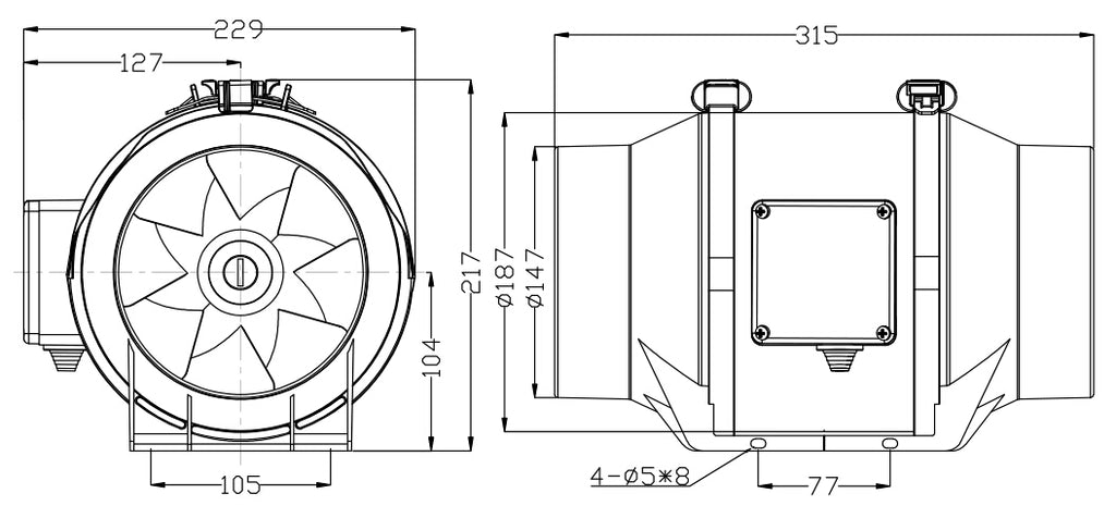 STERR DFA150 - 150 mm Kanaalventilator, twee-snelheidsmotor, 410 m³/h, 44 W