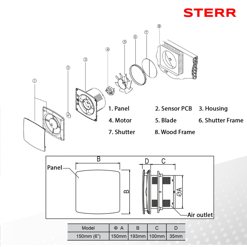 Grotere maat (150 mm): Ideaal voor grotere badkamers of bijkeukens en langere kanaalruns waar verhoogde afzuiging nodig is.